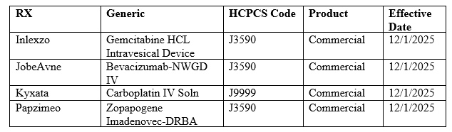 The following drugs are new to the market effective December 1, 2025 and all require prior authorization: (Commercial Only)