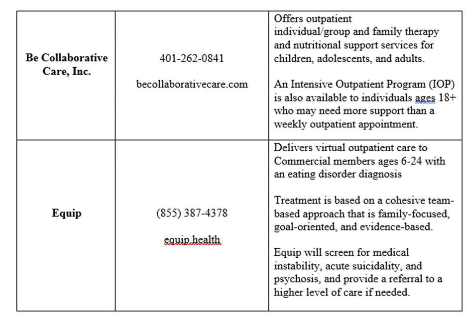 BCBSRI Behavioral Health Case Management Eating Disorder Outreach Program