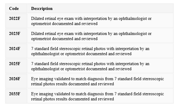 CPT Category II codes for retinal eye exam results must be submitted with the date of service of the eye exam.