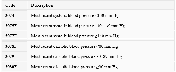 To support HEDIS reporting and quality improvement, specific CPT II codes are used to document blood pressure outcomes, including: